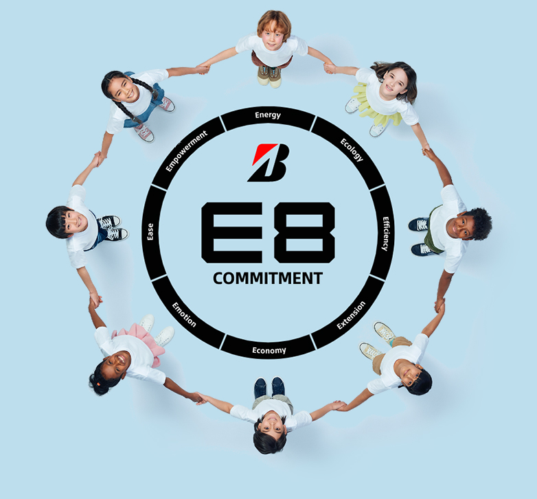 이것이 바로 브리지스톤이 'Bridgestone E8 Commitment'를 소개하는 이유입니다. 현재와 미래 세대의 신뢰를 얻기 위해, 브리지스톤은 보다 지속가능한 세상을 위해 전념할 여덟 가지 가치를 제창했습니다. Bridgestone E8 Commitment (브리지스톤 E8 커미트먼트)는 브리지스톤이 펼치고 있는 모든 활동을 연결하고, 지속 가능한 사회 실현을 지원하기 위한 브리지스톤의 제품, 서비스, 솔루션의 개발과 공급 전반에 걸친 의사 결정을 인도합니다.